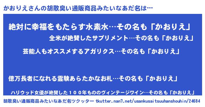 | 意味不明あだ名 | 『自称かおりえ』『永久保存かおりえ』 |