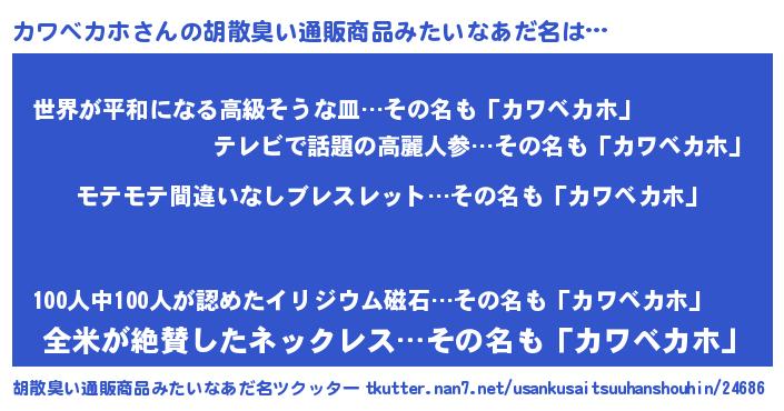 | ヘコむあだ名 | 『カワにー』『豆乳』『カワお』 |