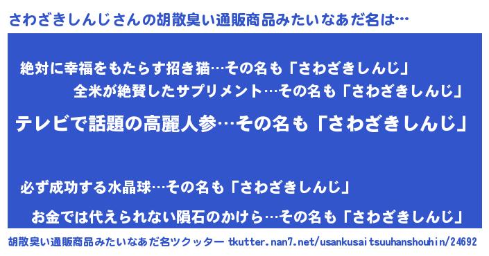 | ヘコむあだ名 | 『さわざきしんじ(笑)』『さわ太郎』 |
