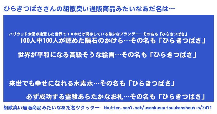 | ヘコむあだ名 | 『なまこ酢』『ひらっふぃ~』 |