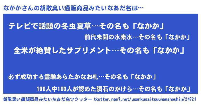 | 意味不明あだ名 | 『とにかく怪しいなかか』『自称なかか』 |