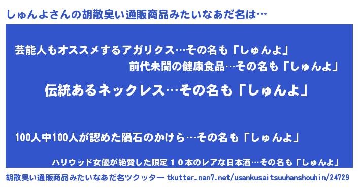 | ピコ太郎風あだ名 | 『シュ二郎』『ピコシ郎』『シシ太郎』 |