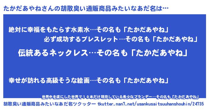 | 意味不明あだ名 | 『とにかく怪しいたかだあやね』 |