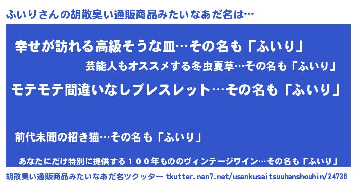 | ヘコむあだ名 | 『ふいにー』『つくし』『ふいり(爆)』 |