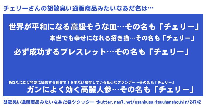 | 意味不明あだ名 | 『ペロリンチェリー』『自称チェリー』 |