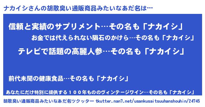 | ヘコむあだ名 | 『ナカお』『ナカイシ(笑)』 |