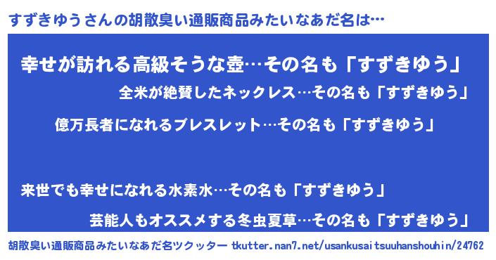 | 意味不明あだ名 | 『ペロリンすずきゆう』『自称すずきゆう』 |