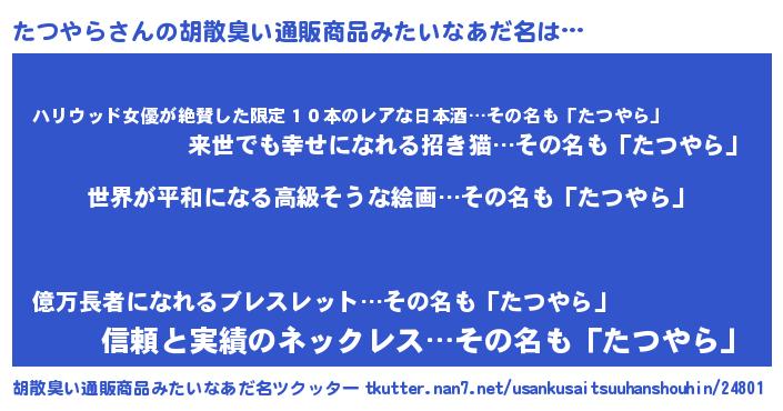 | 意味不明あだ名 | 『たつやらフォーエバー』 |