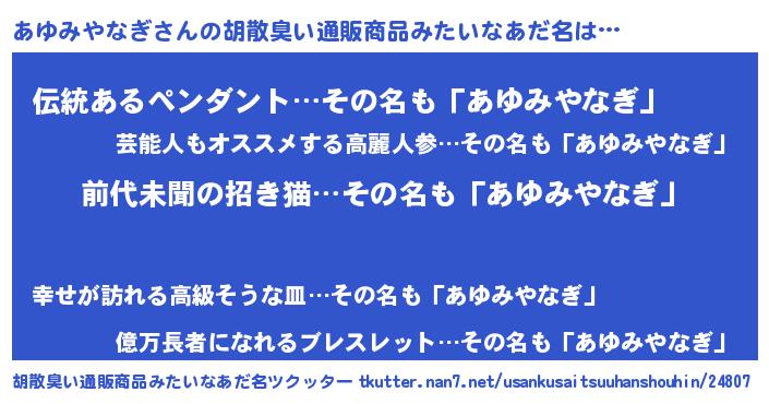| ヒーロー風カッコイイあだ名 | 『ネオアユミヤナギ』『黄金騎士アユ』 |