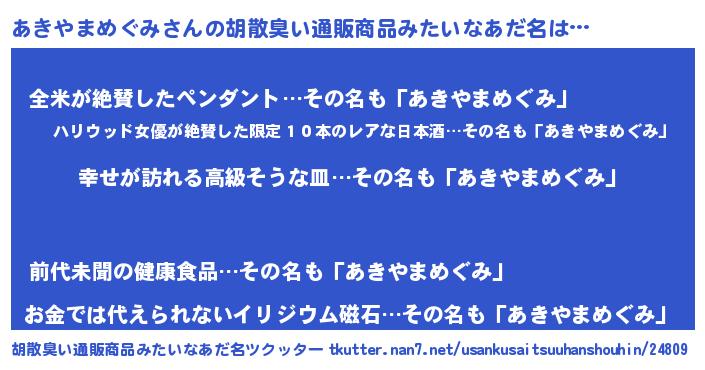 | 女子向けラノベタイトル風あだ名 | 『あきやまめぐみの雑貨屋さん』 |