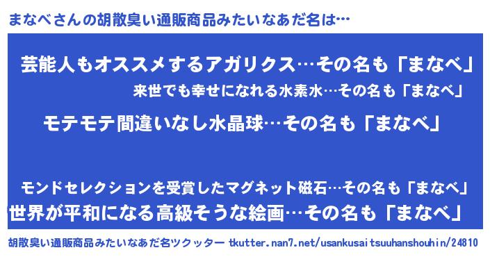 | 欧米人風あだ名 | 『トリンドルまなべ』『マイケルまなべ』 |