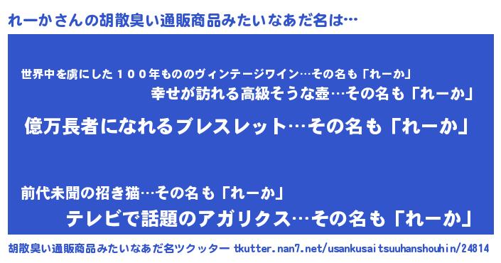 | 意味不明あだ名 | 『ペロリンれーか』『自称れーか』 |