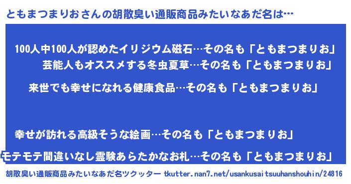 | ヘコむあだ名 | 『ともまつまりお(笑)』『とももー』 |