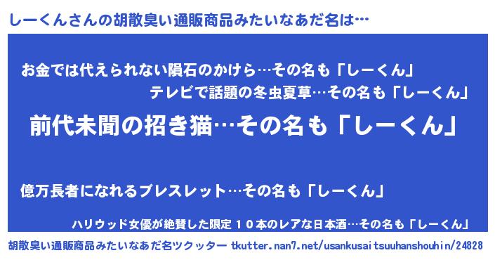 | 意味不明あだ名 | 『永久保存しーくん』『自称しーくん』 |