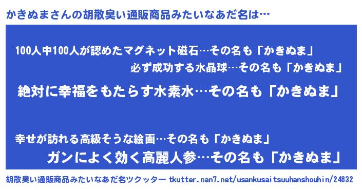 | ヘコむあだ名 | 『かきぬま(遠い目)』『かきにー』 |