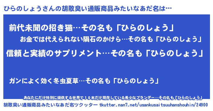 意味不明あだ名 | 『とにかく怪しいひらのしょう』 |
