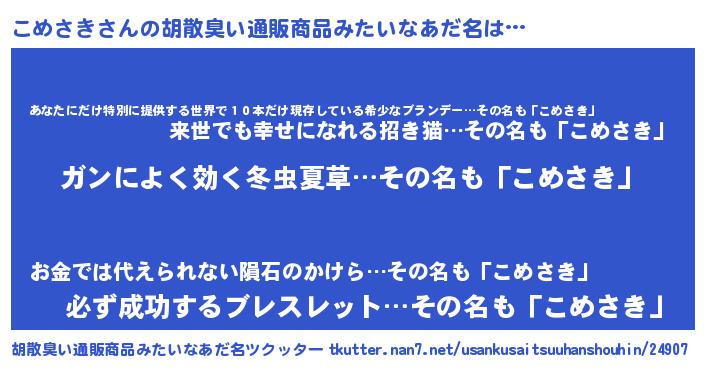 | 意味不明あだ名 | 『自称こめさき』『ペロリンこめさき』 |