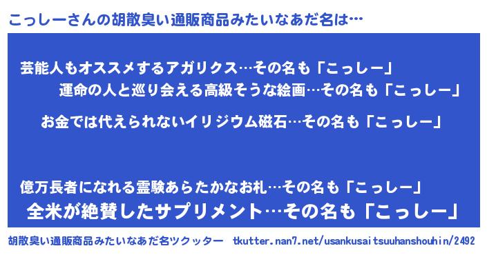 こっしーさんの胡散臭い通販商品みたいなあだ名をツクッター!