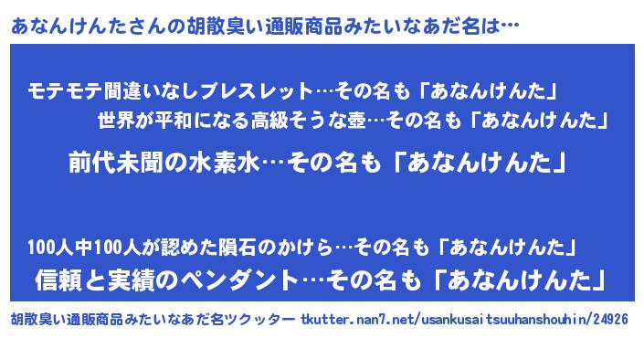 | 意味不明あだ名 | 『永久保存あなんけんた』 |