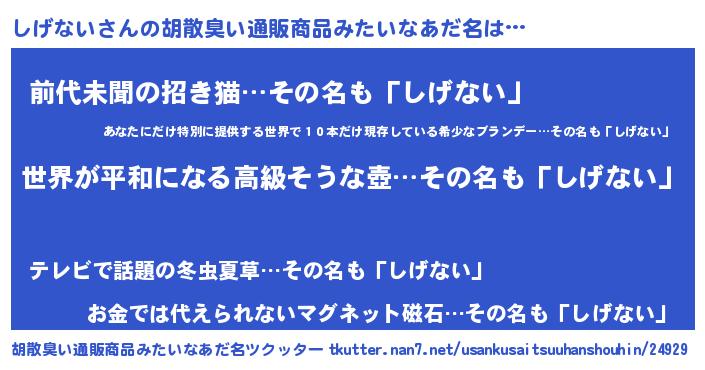| 欧米人風あだ名 | 『しげないクリステル』 |