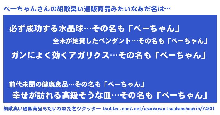 | 意味不明あだ名 | 『自称べーちゃん』『ペロリンべーちゃん』 |