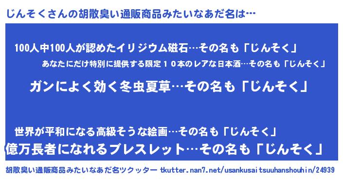 | 男性向けラノベタイトル風あだ名 | 『緋弾のジンソク』『ジンソクスレイヤー』 |