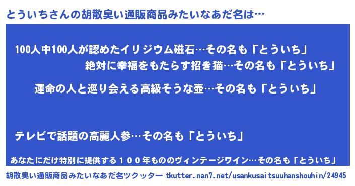 | 肩書あだ名 | 『とういち少将』『とういち総理大臣』 |