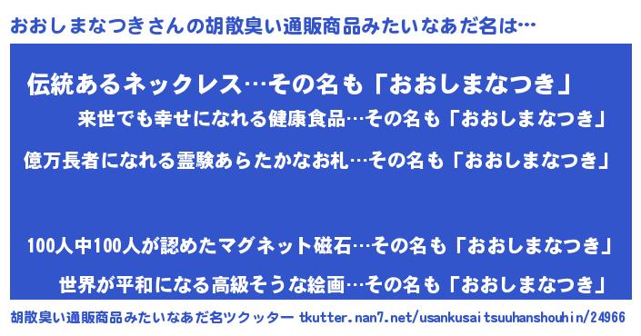 | 男性向けラノベタイトル風あだ名 | 『オオシマナツキアートオンライン』 |