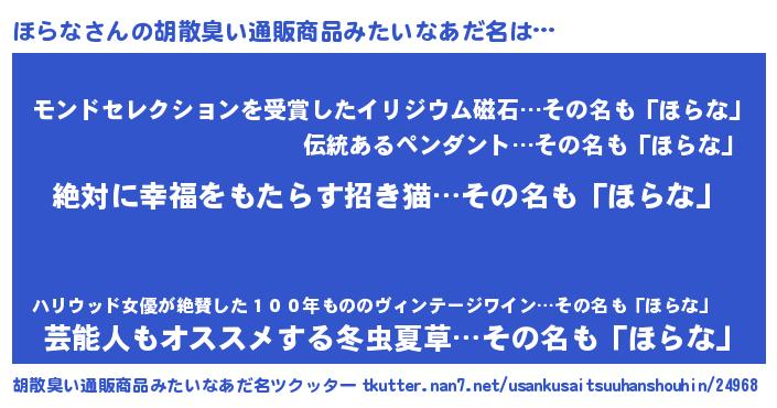 | 意味不明あだ名 | 『永久保存ほらな』『ヨモギ科ほらな属』 |