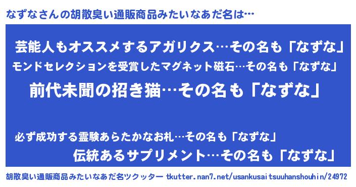 | 意味不明あだ名 | 『永久保存なずな』『自称なずな』 |