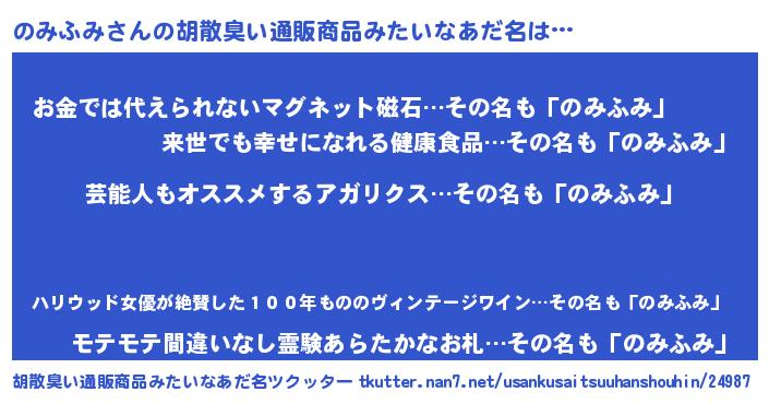 | ヘコむあだ名 | 『のみにゅー』『のみふみ(笑)』 |