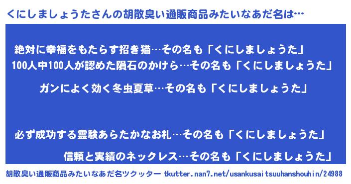 | 意味不明あだ名 | 『自称くにしましょうた』 |
