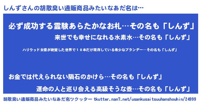 | 意味不明あだ名 | 『住所不定無職しんず(95歳)』 |