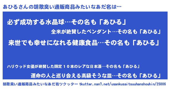 | 欧米人風あだ名 | 『アンジェラ・あひる』『マイケルあひる』 |