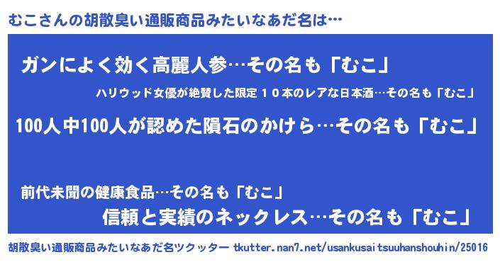 | ヘコむあだ名 | 『むこぷりん』『むこ(笑)』『牛乳』 |