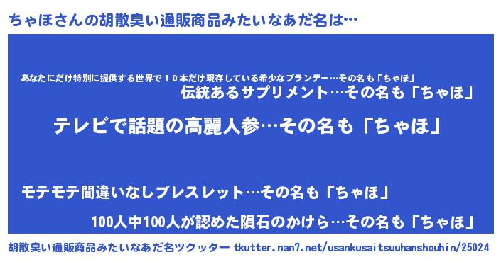 | 意味不明あだ名 | 『自称ちゃほ』『住所不定無職ちゃほ(86歳)』 |