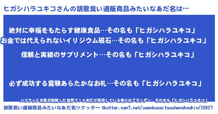 | 意味不明あだ名 | 『とにかく怪しいヒガシハラユキコ』 |