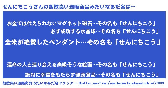 | 意味不明あだ名 | 『とにかく怪しいせんにちこう』 |