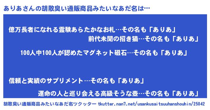 | ヒーロー風カッコイイあだ名 | 『正義の使者ありあ』『スーパーアリア』 |