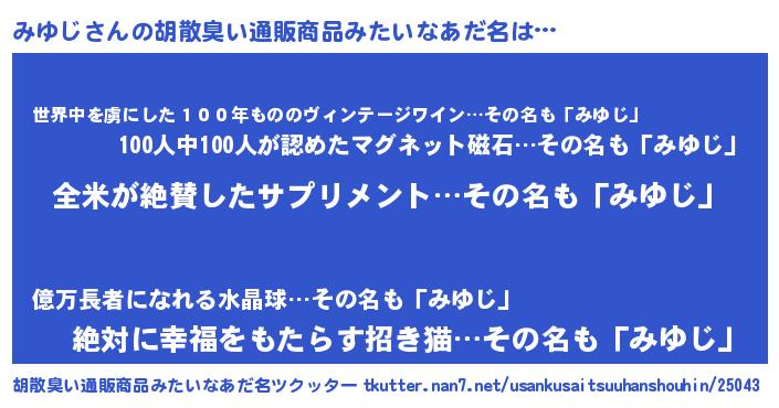 | 意味不明あだ名 | 『とにかく怪しいみゆじ』 |