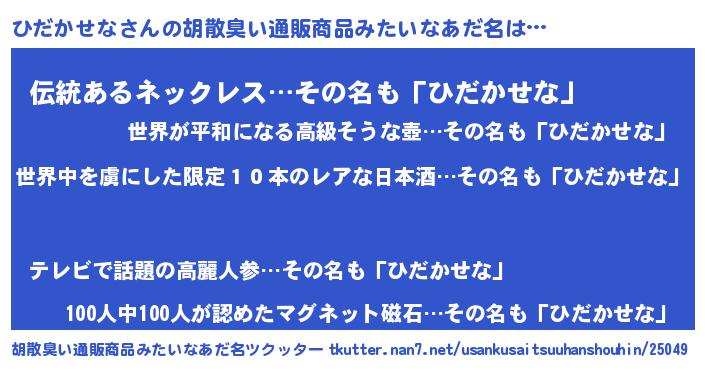 | 意味不明あだ名 | 『住所不定無職ひだかせな(62歳)』 |