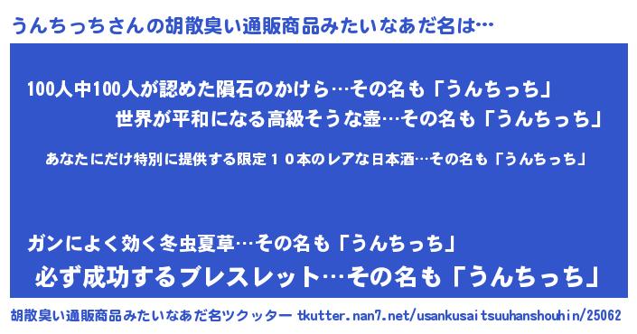 | 男性向けラノベタイトル風あだ名 | 『この素晴らしい世界にうんちっちを!』 |