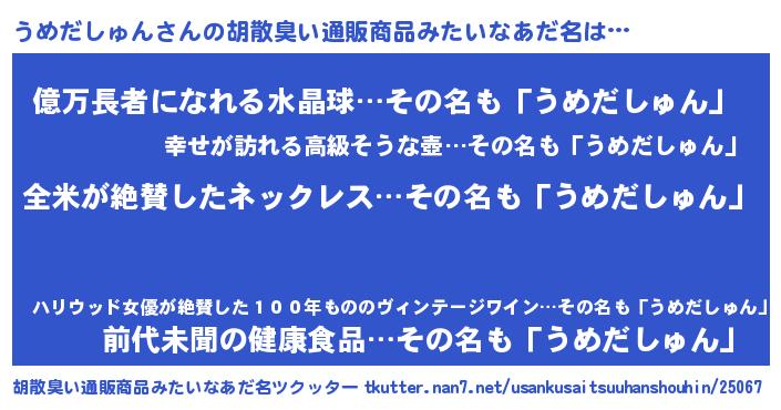 | ヒーロー風カッコイイあだ名 | 『天弓騎士ウメ』『スーパーウメダシュン』 |