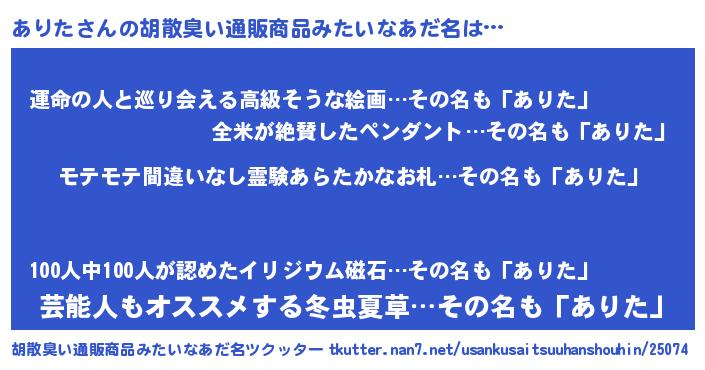 | 欧米人風あだ名 | 『トリンドルありた』『マイケルありた』 |
