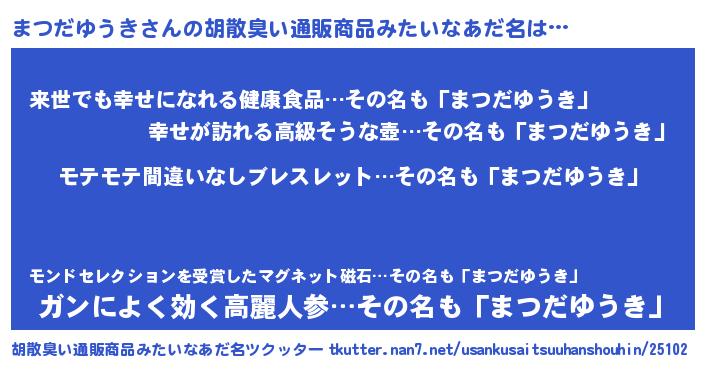 | ヘコむあだ名 | 『まつにー』『まつだゆうき(小並感)』 |