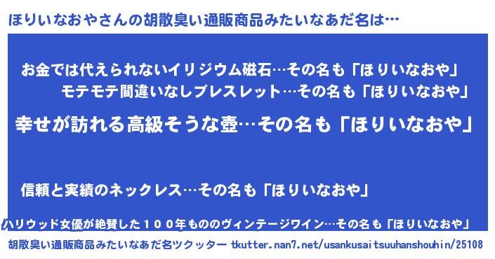 | 意味不明あだ名 | 『ほりいなおやフォーエバー』 |