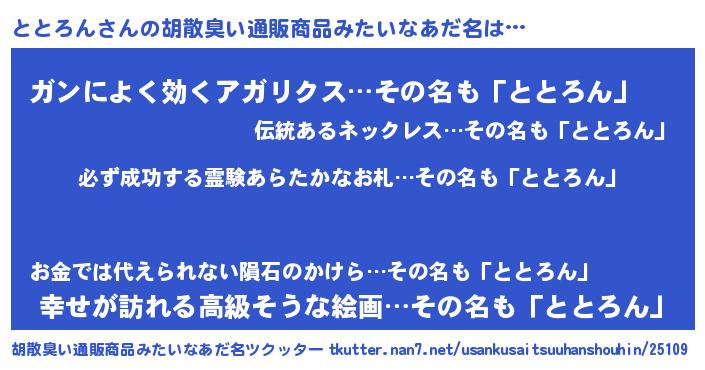 | ヘコむあだ名 | 『ととっふぃ~』『つくし』『ととを』 |