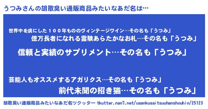 | 意味不明あだ名 | 『とにかく怪しいうつみ』『自称うつみ』 |