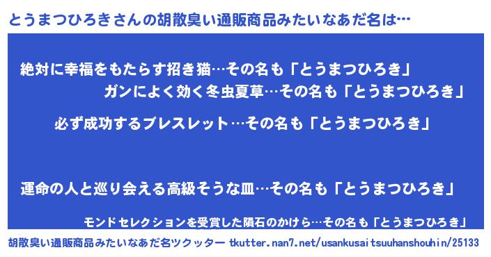 | ヘコむあだ名 | 『とうふぇ~』『とうまつひろき(小並感)』 |