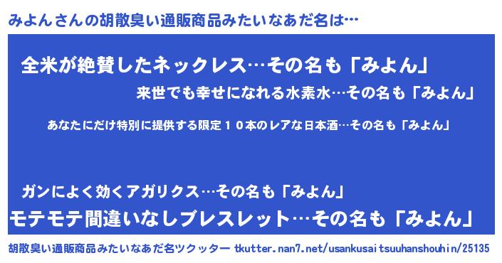 | 意味不明あだ名 | 『住所不定無職みよん(68歳)』『自称みよん』 |